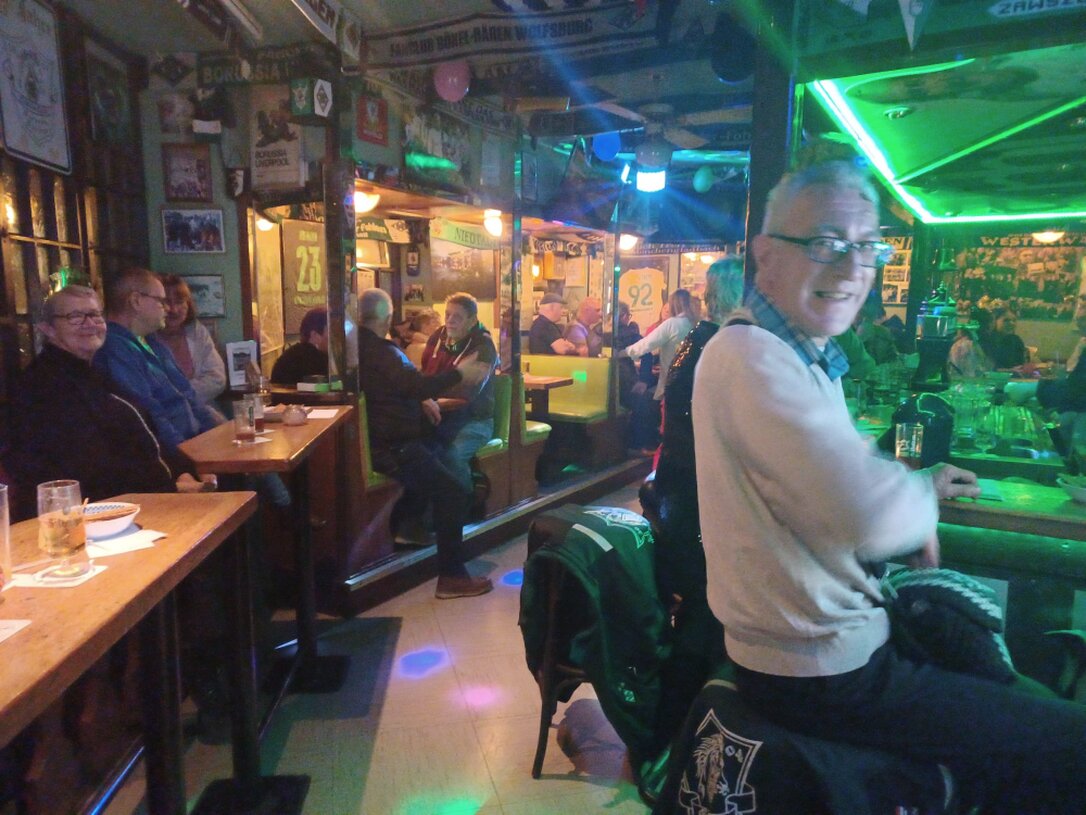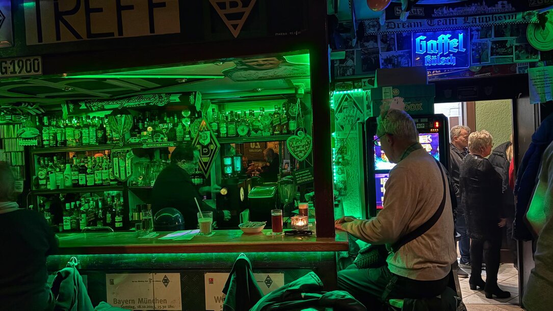 erfasst jeden Gast des Endlich-Treffs auf der Neustraße 22 in Mönchengladbach, sobald er eintritt und an den Wänden unzählige schwarz-weiß-grüne Impressionen entdeckt. Hier begegnen sich Borussen verschiedenster Generationen. Nur wenige Meter von Günter Netzers Lovers Lane und beinahe in Sichtweite von dessen Geburtshaus werden wir uns gemeinsam an 𝐔𝐧𝐢𝐤𝐚𝐭𝐞 und an einen Volkssport erinnern, der imstande ist, Menschen unterschiedlichster Herkunft miteinander zu verbinden.